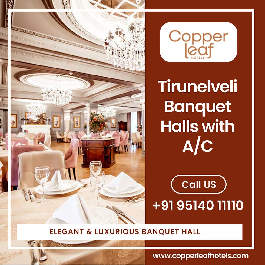 #TirunelveliEvents #BanquetHallsTirunelveli #CopperleafHotels #WeddingVenuesTirunelveli #EventPlanning #LuxuryBanquetHalls #TirunelveliWeddings #ACBanquetHalls #CelebrationVenues #PartyHallsTirunelveli